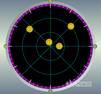 图为接收机显示的Galileo星空图。