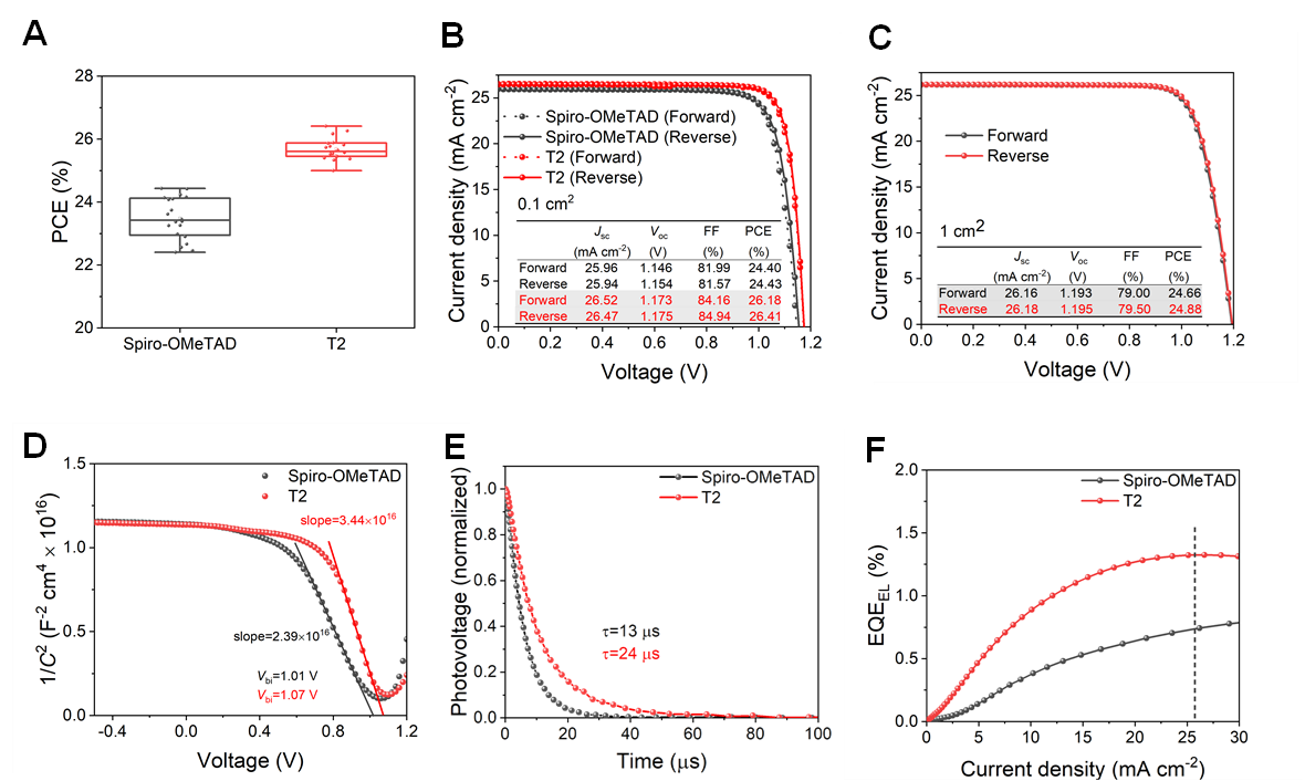 相关研究成果以“通过多功能空穴传输材料实现高效率稳定钙钛矿太阳能电池”(Highly efficient and stable perovskite solar cells via a multifunctional hole transporting material)为题,于近日发表于国际学术期刊《焦耳》(Joule)。