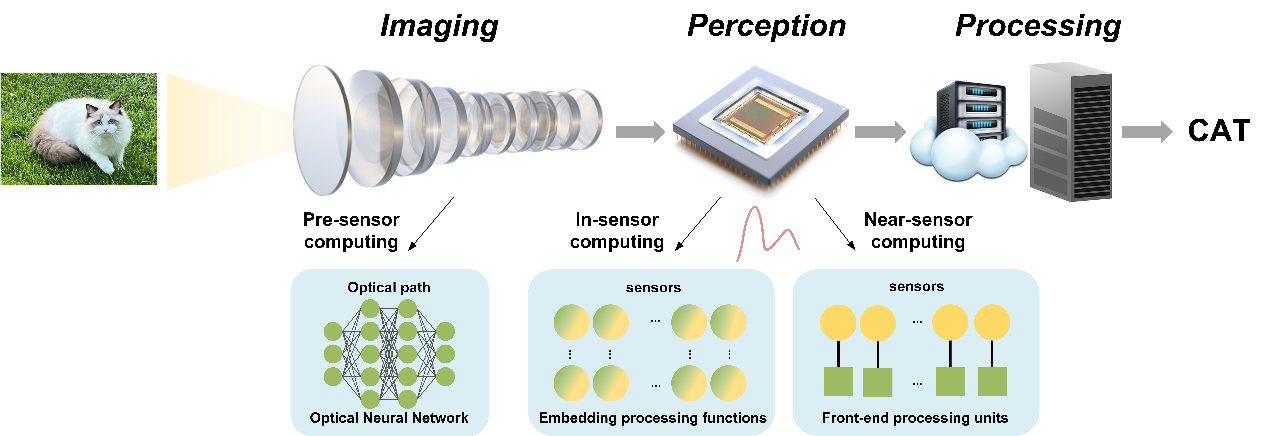 清华新闻网7月30日电 在物联网时代,视觉图像传感器作为智能社会的关键设备,被嵌入到诸如移动通信终端、智能穿戴设备、汽车和工业机器等各种设备中。随着应用的不断扩展,对传感器的系统功耗、响应速度、安全性能等方面也提出了更高的要求。而在传统的“感传算”链路中,内存的访问速度和通信带宽逐渐成为了限制系统功耗及速度的主要瓶颈。将计算单元向传感单元靠近,使系统的近传感端拥有一定的数据处理能力,逐渐成为解决这一问题的有力途径。感前光计算相比于其他近感计算方式,具有高速、高带宽、低功耗的优势。然而,目前绝大部分光神经网络需要相干激光作为光源,硬件系统笨重复杂,且仅能完成线性运算,缺乏层间非线性激活,限制了感前光计算在边缘场景的应用。