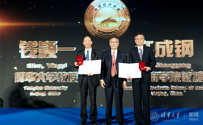 清华新闻网12月7日电 (通讯员 张瑾琳)12月4日上午,2016年中国经济学奖颁奖典礼在北京举行。清华经管学院院长钱颖一教授、长江商学院许成钢教授被授予首次颁发的中国经济学奖,以表彰他们对在转轨经济中作用于政府和企业激励机制的研究所做出的贡献。