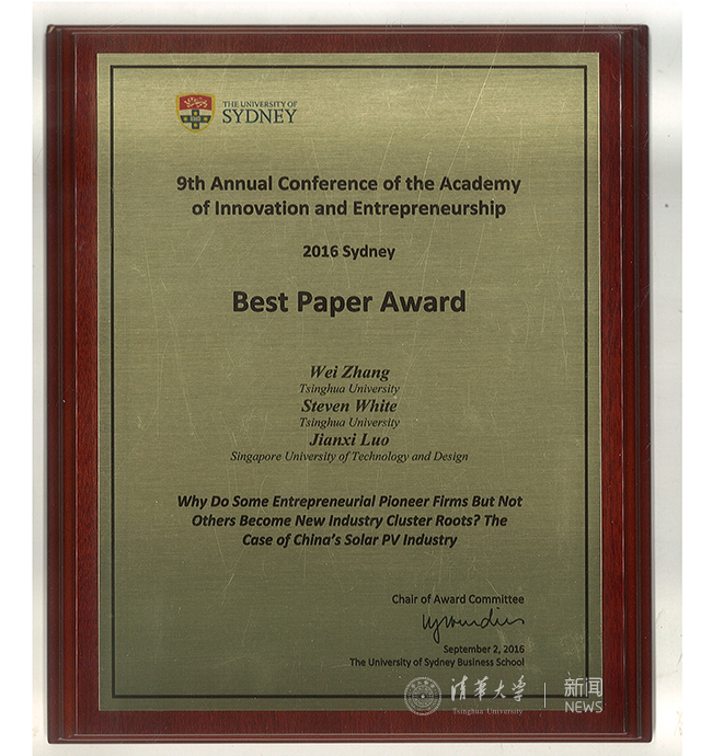 清华新闻网9月19日电 (通讯员 张瑾琳)9月,清华经管学院创新创业与战略系张帏教授、白思迪(Steven White)教授与新加坡科技设计大学罗建曦教授合著的会议论文《为什么某个创业企业而不是其它企业能成为产业集群的根基企业?——基于中国光伏产业的研究》(Why do some entrepreneurial pioneer firms but not others become industry cluster roots? The case of China's solar PV industry)在第九届创新创业国际学术年会(9th Annual Conference of the Academy of Innovation and Entrepreneurship,简称AIE年会)获得唯一的最佳论文奖(Best Paper Award),这是精品无码久久久久久久久_国产精品一区二区三区四区五区_欧美亚洲国产激情一区二区_午夜精品久久久久久久久久久久_亚洲欧洲中文日韩久久AV乱码_91精品欧美一区二区三区_久久精品一区二区免费播放_日韩高清大片永久免费入口_久久国产欧美日韩精品免费_欧美一区二区三区久久综合_国产精品天天狠天天看教师首次在AIE年会上获此殊荣。
