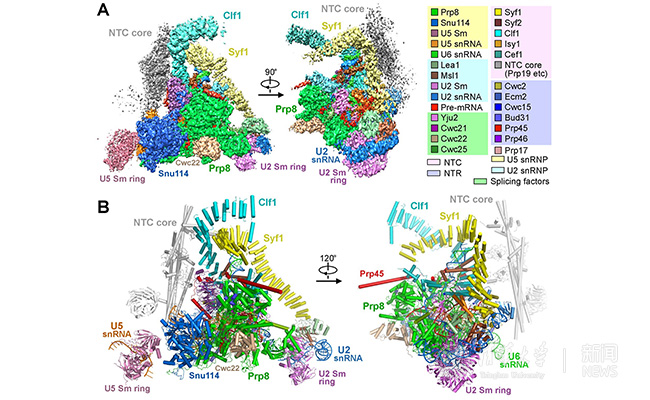捕获酵母剪接体两个关键工作状态高分辨率电镜结构