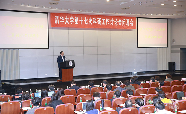 在闭幕会上,副校长薛其坤院士就第17次科研工作讨论会工作进行了回顾和总结。他指出,自从去年4月9日科研工作讨论会启动以来,学校层面及相关部门先后组织各类专题调研、座谈、报告、论坛、沙龙等50余场,参与师生超过2000人次,展开了广泛而深入的研讨,征集各类意见、建议200多条。通过讨论找准了问题、凝聚了共识、明确了任务、提出了措施,为清华新百年科研工作的改革与发展指明了方向。