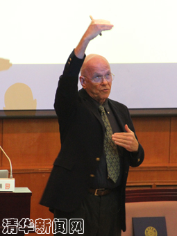 聘请仪式结束后,夏普莱斯做客清华海外名师讲堂,发表了题为“点击化学:研究新方向”的演讲。点击化学(Click chemistry)是由夏普莱斯教授在2001年引入的一个合成概念,其特点是反应立体选择性好,产率高效,副反应少,反应迅速完成,尤其是含水体系中生物分子的衍生化,可用于研发医学诊断试剂和新药开发的新型生化标记物,被认为是一项非常理想的技术,已经被应用于药物开发。在演讲中,夏普莱斯重点强调了点击化学的新方向, 即“Rediscovery”,重新发掘传统化学反应的新用途,重点介绍了在含水体系中,利用二氟亚砜作为磺酸化试剂,创建简便、快速有机分子磺酸化的新方法,从而为含磺酸基药物的制备提供了一个高效、简便途径,该方法还可用于生物大分子的磺酸化结构修饰。