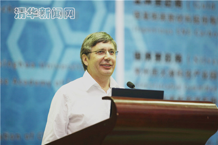 图为石墨烯的发现者、2010年诺贝尔物理学奖获得者Andre Geim教授代表特邀演讲嘉宾发言。杨 昊 摄