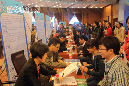 本次招聘会获得了来自清华校内和校外学生的广泛关注,在招聘会开始之前便有大量同学到现场排队。进入会场后,同学们根据各单位介绍秩序井然地与招聘人员进行交流,部分同学接受了招聘人员的现场面试。