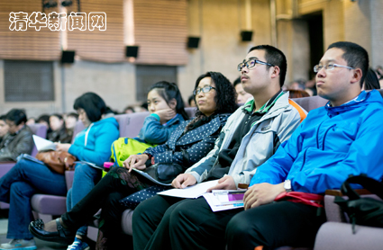 大礼堂前草坪周围的室外面对面咨询展位,一直被考生和家长层层包围着。建筑学院展位前,北师大二附中一位高三女生告诉记者:“自己对建筑、经济和环境都比较有兴趣,很想了解清华学生的作息、学习压力等问题。”她的同学则比较关心“每个专业学些什么,将来可以有什么工作,出国是否容易”等问题。北京四中一位高二考生说,自己是和爸爸一起来参加校园开放日活动的,“清华很大很美。我是学理科的,以后要考清华,这次来是想要多了解清华的工科专业。”