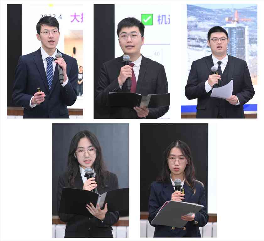 优秀学生科创代表林祐均、耿威、汤晨翀、郝悦延、黄子瑜作分享(从左至右,从上至下)