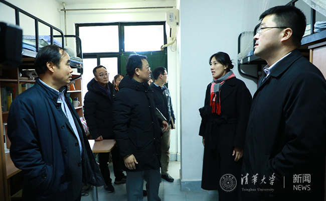 王希勤,吉俊民,过勇查看紫荆1号楼学生宿舍