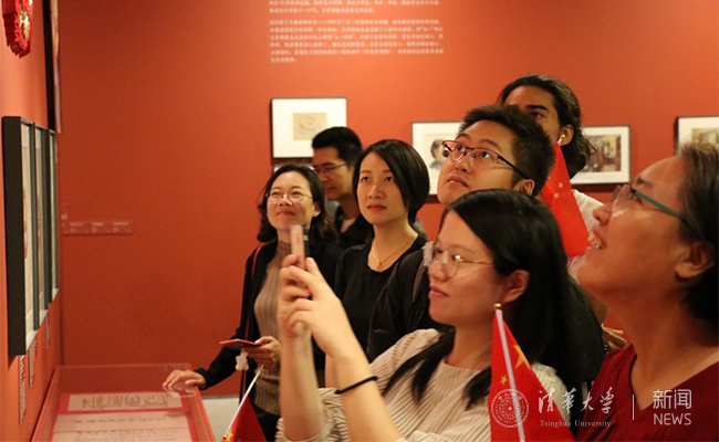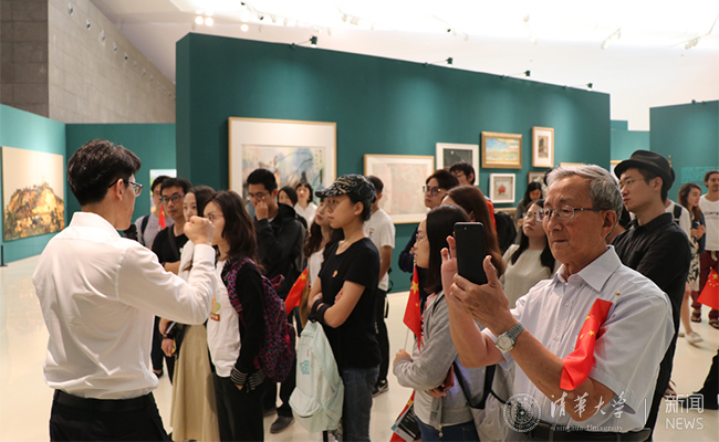 在《为新中国造型——周令钊先生百岁艺术展》主题展览中,师生们欣赏了百岁高龄的周令钊教授的艺术作品,其中包括抗日战争时期创作的抗战宣传画、作为主笔为开国大典绘制的天安门城楼毛主席画像、参与设计中华人民共和国国徽和中国人民政治协商会议会徽等。他用艺术作品表达着个人发展和国家命运的紧紧相依,生动展现了中华民族从站起来、富起来到强起来的奋斗历程。