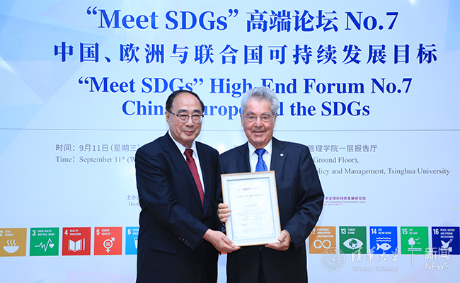 奥地利前总统海因茨·菲舍尔受聘清华SDG研究院全球顾问委员