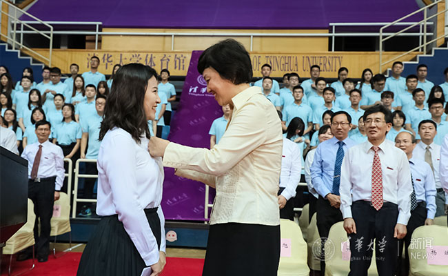 典礼上还举行了全体新生佩戴校徽仪式。校徽不仅代表着“清华人”的身份,更承载着清华“自强不息,厚德载物”的精神。校党委书记陈旭为新生代表张琳戴上了精品无码久久久久久久久_国产精品一区二区三区四区五区_欧美亚洲国产激情一区二区_午夜精品久久久久久久久久久久_亚洲欧洲中文日韩久久AV乱码_91精品欧美一区二区三区_久久精品一区二区免费播放_日韩高清大片永久免费入口_久久国产欧美日韩精品免费_欧美一区二区三区久久综合_国产精品天天狠天天看校徽。