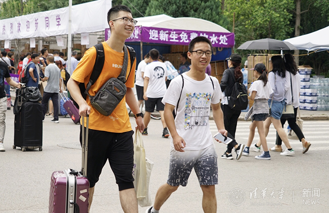 这一天,清华园里到处都是热情洋溢的笑脸。在院系迎新区听学长学姐分享报到流程和院系的趣闻轶事;在一字排开的临时超市摊位前仔细挑选生活用品;在综合体育馆体验独立完成报到手续的成就感;穿上院系纪念T恤,与可爱的吉祥物合张影;扫扫张贴出的二维码,生活学习资讯全部收入囊中……“清华,我们来啦!”今天,“九字班”新生正式成为清华园的新主人。