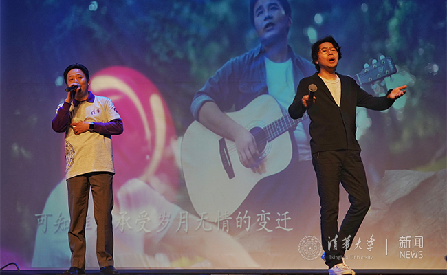 “多少人曾爱慕你年轻时的容颜,可知谁愿承受岁月无情的变迁。多少人曾在你生命中来了又还,可知一生有你我都陪在你身边……”4月27日下午,《一生有你》的悠扬旋律在大礼堂响起,1989级建筑系校友卢庚戌以一首原创歌曲,带领1989级校友重温那段青春岁月。回忆起校园时光,卢庚戌笑着说:“为什么清华走出那么多校园歌手,因为园子里女生少,‘竞争激烈’,所以要唱得非常好才能打动芳心。”台下一片欢声笑语,其乐融融,时光仿佛倒回至大学岁月。