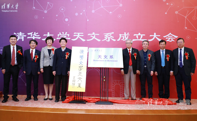 陈旭、薛其坤、陈建生、董国轩、赵刚、景益鹏、李惕碚、毛淑德共同为天文系揭牌