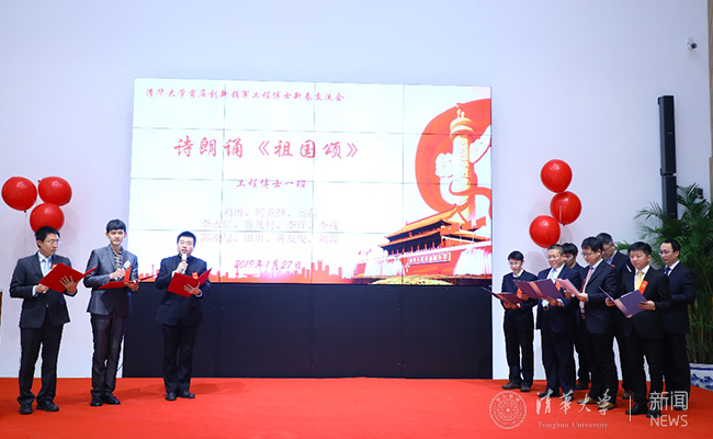 在演出环节,首届创新领军工程博士们采取诗朗诵、歌曲串烧等形式,迎接2019年的到来。诗朗诵《祖国颂》《如果没有李白》,歌曲《我和我的祖国》《成都(清华版)》等节目,诉说了清华人对祖国的无限热忱与依恋,表达了同学们在清华相识、相伴、相惜之情。
