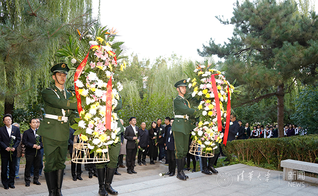 陈旭指出,回顾清华园的光荣历史,缅怀英勇就义的诸位先烈,新时代的清华学子更当有新时代的责任与担当。希望全校师生坚守爱国初心,发扬奉献精神,树立共产主义远大理想和中国特色社会主义共同理想。希望全体同学坚定理想信念,树立更高远的人生目标,做到有政治追求、学术追求、职业追求、人生追求,矢志艰苦奋斗,锤炼高尚品格,争做德智体美劳全面发展的成才表率,把人生理想和国家需要联系起来,把个人命运同祖国未来联系起来,用一生实践“爱国奉献、追求卓越”的清华精神。