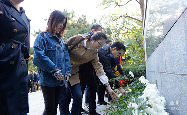 随后,跟随仪仗队整齐的步伐,全体师生依次走到英烈纪念碑前鞠躬、敬献白菊,向为祖国献出生命的先烈们致上最崇高的敬意。