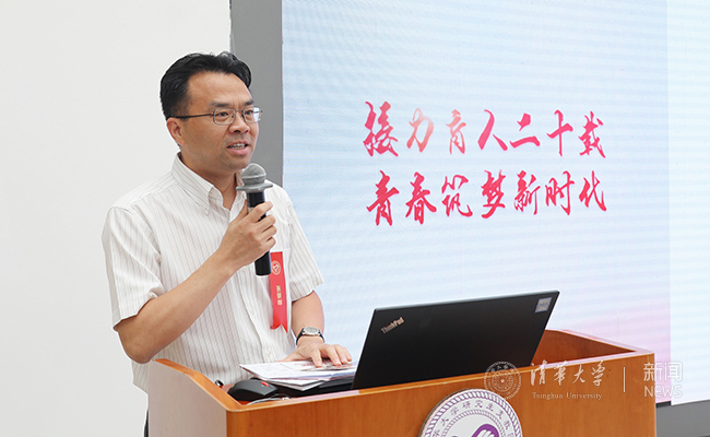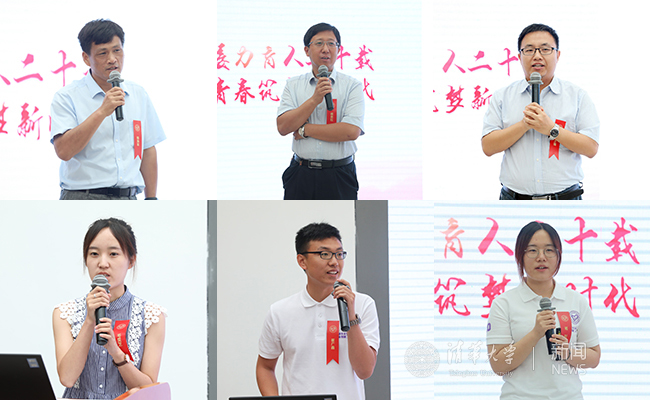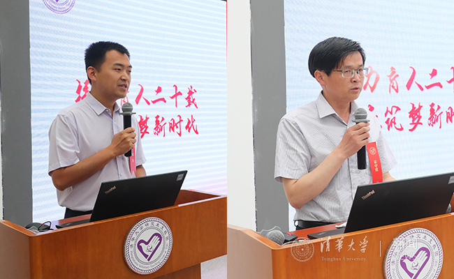第十九届支教团团长、材料学院2013级本科生崔广鑫,第二十届支教团团长、土木系2014级本科生杨钊分别汇报了第十九届支教团在服务学校一年来的工作以及第二十届支教团在校期间的系统培训情况。