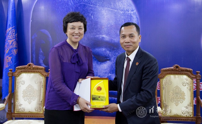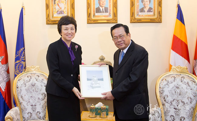 陈旭与皇家金边大学校长郑杰利互赠纪念品
