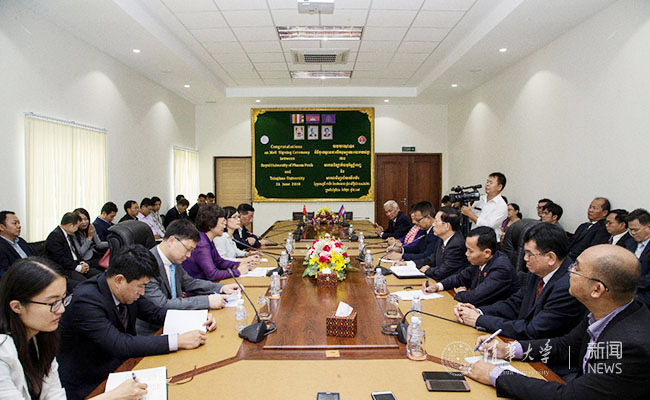 陈旭与皇家金边大学校长郑杰利签署两校合作备忘录