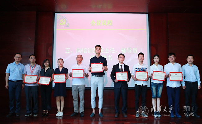 开学典礼上,与会嘉宾向星火班班主任、学生辅导员颁发了聘书。孟毅芳等五名来自北京兄弟院校的研究生工作部门教师担任班主任,佟瑶等五名第十期培训班优秀学员担任星火班辅导员。