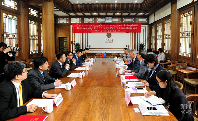 仪式结束后,索尔海姆先生做客环境学院全球环境国际班高端访谈,与现场师生畅谈全球环境治理方面的经验和感想。
