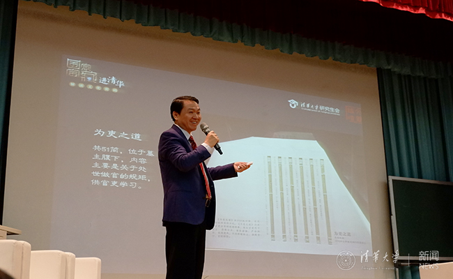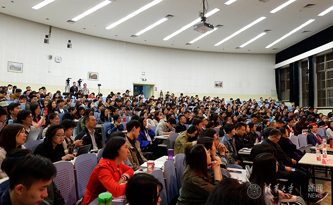 彭林表达了对《国家宝藏》这档节目的喜爱和激动之情,高度评价其为“中华文化的营养大餐”,也分享了带学生去看博物馆中的经历和趣闻。方勤重点介绍了湖北省博的“镇馆之宝”曾侯乙编钟背后的故事,还提及了曾侯乙编钟与清华的奇妙缘分。蔡琴向同学们介绍了在浙江省博浩浩十万馆藏之中,登上《国家宝藏》的三件藏品是如何被选中的。杜鹏飞细致地讲述了清华艺博建成的筹备历程与藏品来源,当讲到清华艺博凝聚了几代清华人近百年的梦想与心血时,在场的师生都给予了热烈的掌声。