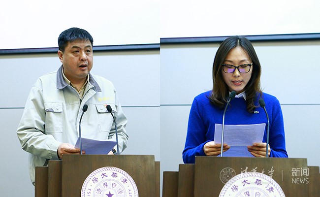 随后,“后勤优质项目”代表、修缮校园管理中心吴跃明和“后勤标兵”代表、基建规划处任莹进行了大会交流发言。