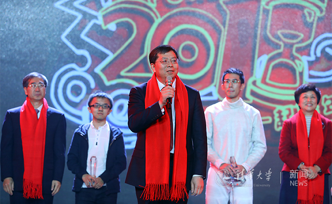 校长邱勇在新年钟声敲响之际发表新年贺词。