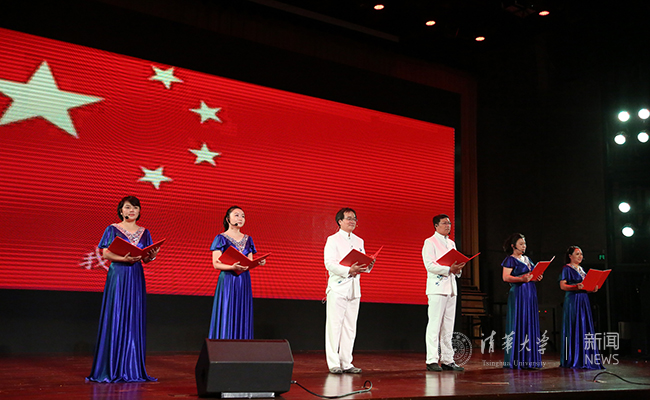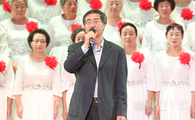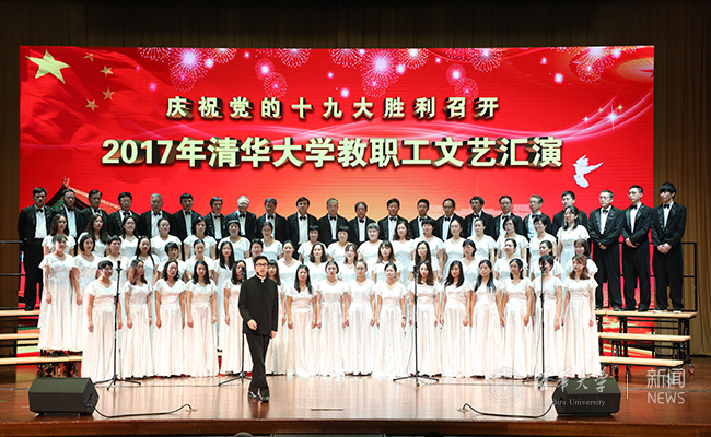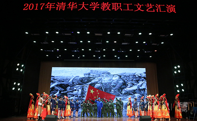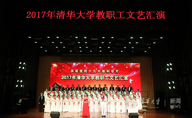文艺汇演在老教师合唱团的大合唱《祖国颂》中拉开帷幕,深情的歌声与浑厚的朗诵融合得恰到好处,唱响“江山壮丽,人民豪迈”。大合唱贯穿首场演出始终:《四渡赤水出奇兵》《祖国不会忘记》《到吴起镇》《没有共产党就没有新中国》《歌唱祖国》《中国人民解放军进行曲》……一首首耳熟能详的经典合唱,将听众带回激情燃烧的岁月,重温胜利的喜悦与感动;《爱我中华》《东方之珠》《中国之梦》《不忘初心》……一句句充满感召力的时代之音,引起了现场观众的强烈共鸣,展示了践行美好梦想的坚定之志;《马兰花开》《飞向远方》《清华颂》……有关清华的音乐响起,现场观众满怀豪情。