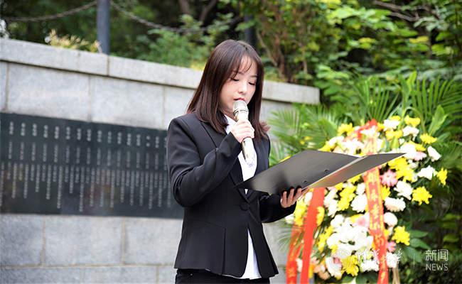 校研究生会主席苏舒介绍清华英烈事迹。吴嘉伦 摄