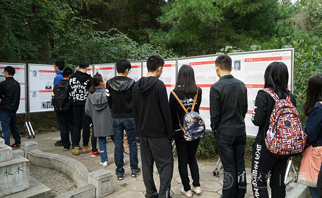 同学们反复阅读清华先烈事迹。