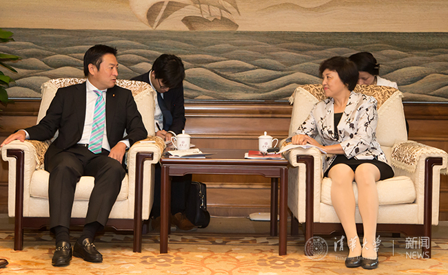 陈旭和秋元司会谈。记者 张宇