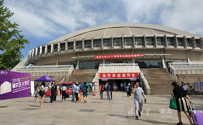 体育馆南门外,写有“更好的清华,更好的自己”的入学日纪念板格外引人注目。很多新生在这里拍照留念,在明媚的夏日里留下在清华的第一份美好记忆。