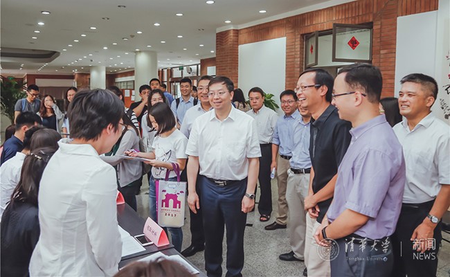 在法学院迎新点,邱勇与办理入学手续的研究生新生们亲切交谈,欢迎大家进入清华学习。本科毕业于南京大学的刘书凯是一名台湾学生,这次进入法学院攻读硕士;而本科毕业于内蒙古大学的刘野是原子软件开发有限公司创始人、多次参与公益活动事业、曾获评2017年中国大学生“自强之星”。在得知余理晓和朱晓睿两位博士新生通过“申请-审核制”进入清华后,邱勇非常高兴,他对同学们表示,清华希望通过申请-审核制招收到更多优秀学生,他嘱咐同学们在清华继续努力,创造属于自己的新天地。