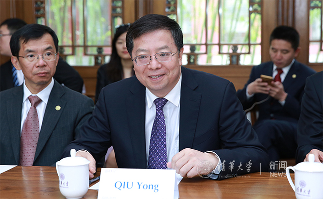 邱勇介绍学校整体情况。记者 苑洁 摄