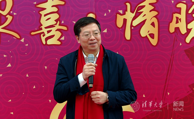 邱勇向留校学生和坚守岗位的教职员工致以新春的问候。记者 张帆 摄