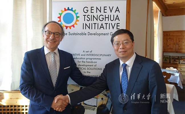 邱勇与日内瓦大学校长弗吕克格尔在签约仪式后合影。张艺