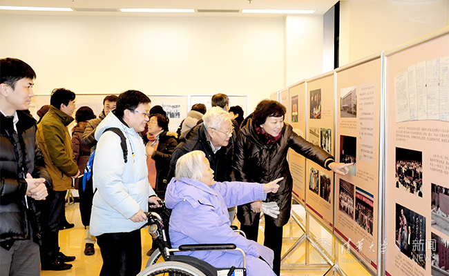 在参观过程中,原校党委书记、校史编委会副主任贺美英回顾了李传信同志在清华的学习工作经历,希望展览使师生们受到教育,把学校优良传统一代代传承下去。