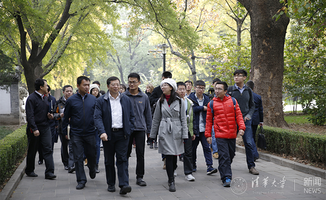 邱勇与同学们从工字厅出发。 记者 张宇