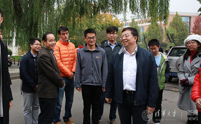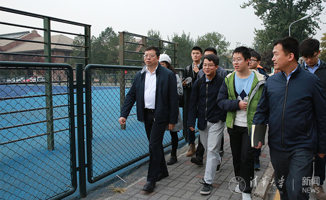邱勇与学生代表步行调研校园环境