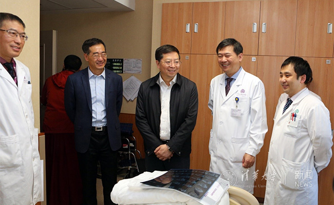 在调研座谈会上,邱勇一边听取医院整体情况汇报及各科室主管发言,一边详细记录,不时询问有关情况。邱勇对北京清华长庚医院建院两年来取得的成绩表示肯定,对辛勤付出的全体“创业者”表示感谢。他说,近十年特别是近五年将是世界一流大学建设的关键时期,学校正在深入推进各项综合改革,探寻面向长远的学科发展建设的体制机制。医学是新世纪科学发展的重要领域,也是清华建设世界一流大学的重要组成部分。学校要特别重视并重点发展医学学科建设,特别是临床医学学科建设。清华长庚医院践行新的模式与理念,是清华临床医学学科发展战略的重要一环。希望医院在汲取台湾长庚纪念医院的成功经验的基础上,接轨国际、着力创新,依托清华学科完备的优势,加强与学校其他专业的合作,进一步推进以精准医学为基础的临床转化科学研究及医疗服务体系,形成特色,促进医院快速发展。