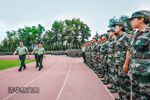 刘国胜少将与副校长杨斌一同检阅军训团学生。张宇 摄