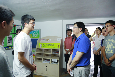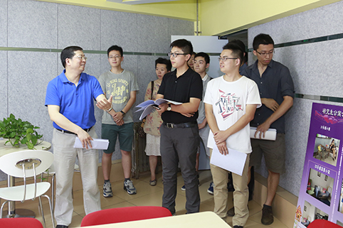 在紫荆公寓15号楼,邱勇一行首先参观了学生公共交流空间,听取了参与设计同学就公共交流空间设计方案和改造过程的介绍。邱勇说,大家的想法非常好,作为同学们的主要生活区,在完善公共交流空间设计的同时,要让更多同学参与其中,充分利用、有效管理,进一步发挥空间的交流和育人作用。