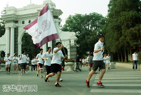 随后,校长助理、生命学院院长施一公为领跑方阵旗手田径一队滕海宁授旗。他鼓励同学们坚持锻炼,在离开清华园后继续保持体育运动习惯,争取为祖国健康工作五十年。