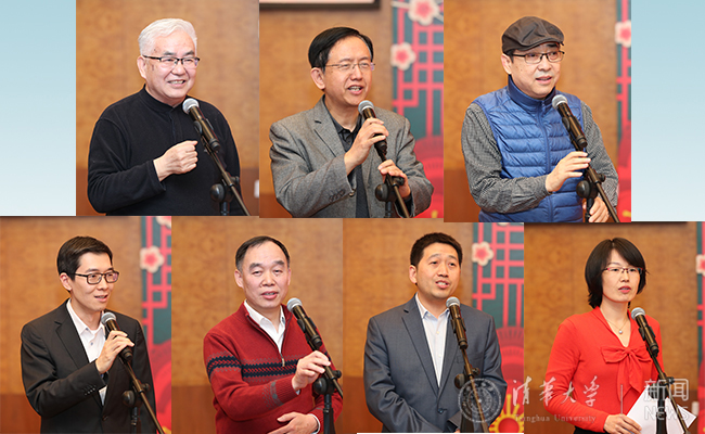 茶话会上,计算机系教授郑纬民院士、精仪系类脑计算研究中心主任施路平、美术学院教授何洁、新闻学院副教授周庆安、党委统战部原部长尉志武、生命学院教授时松海、后勤党委办公室主任赵影交流发言,与来宾共同分享过去一年在各自领域的收获与感受,并向全校师生致以节日问候和诚挚祝福。