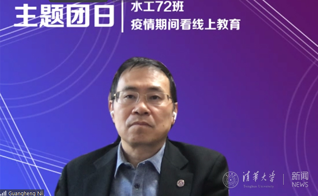 倪广恒分享了关于在线课程教学的感受。他表示,全校师生同上一堂课的设计非常震撼,为学校特殊时期的教学安排点亮了明灯。作为水利系“水文学(2)”课程的授课教师,倪广恒介绍了课程的创新点以及对同学们在线上课的期望。