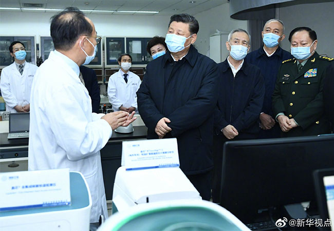听取汇报后,习近平发表了重要讲话。他指出,疫情发生以来,全国科技战线积极响应党中央号召,有关部门组成科研攻关组,确定临床救治和药物、疫苗研发、检测技术和产品、病毒病原学和流行病学、动物模型构建等五大主攻方向,组织跨学科、跨领域的科研团队,科研、临床、防控一线相互协同,产学研各方紧密配合,短短一个多月时间内就取得了积极进展,为疫情防控提供了有力科技支撑。在这场重大斗争中,广大科技工作者充分展示了拼搏奉献的优良作风、严谨求实的专业精神。当前,打赢疫情防控人民战争、总体战、阻击战还需要付出艰苦努力。越是面对这种情况,越要坚持向科学要答案、要方法。