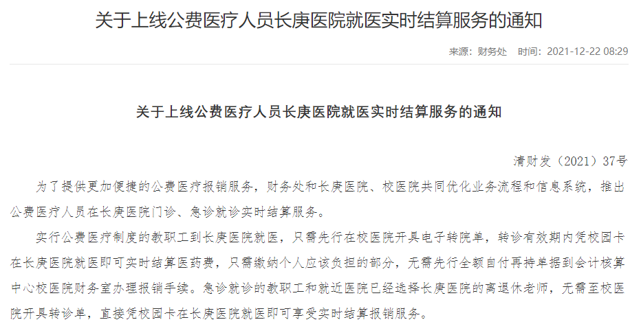 公费医疗实时结算平台上线通知